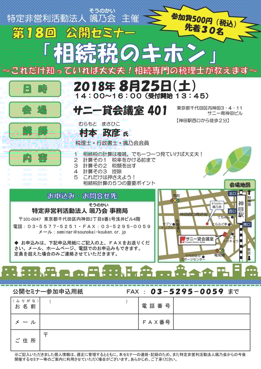 成年後見を受嘱する認定NPOですので、老後や相続にまつわるテーマということで、「相続税のキホン~これだけ知っていれば大丈夫!相続専門の税理士が教えます~」と題して、相続税の細かい計算ではなく、大雑把に把握することを目標にして、ちょくちょく節税ポイントもお話しするような形で進めました。