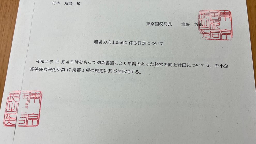 税理士事務所クオリスは、東京国税局より経営力向上計画の認定を受けました。