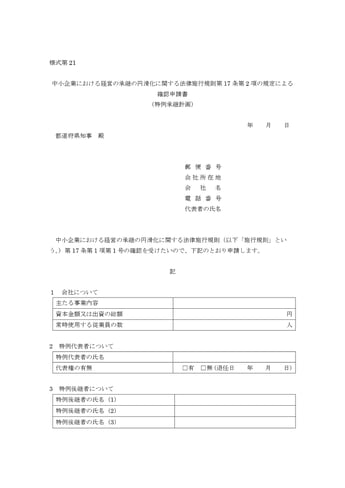 - 確認申請書(上記の特例承継計画のことです)・・・2部