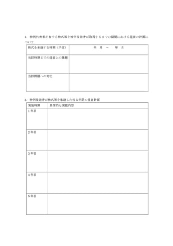 2ページ目は、株式の贈与を予定している時期のほか、その時期までの経営上の課題とその対応、5年間の経営計画を記載します。